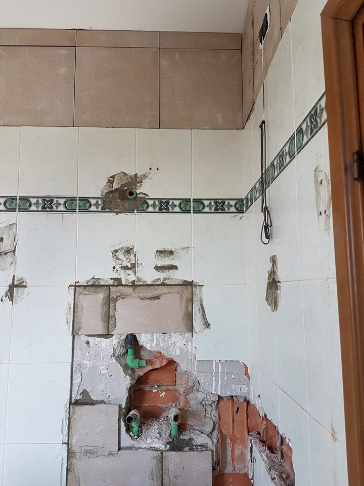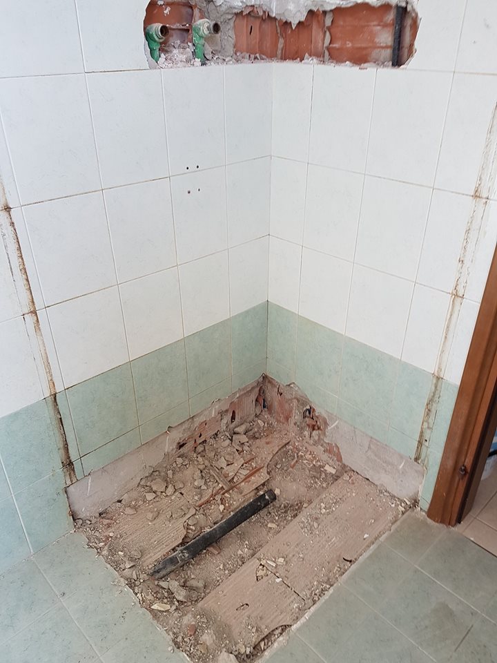 rimozione vasca per realizzazione box doccia in spatolato di resina e pavimento