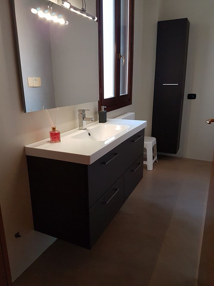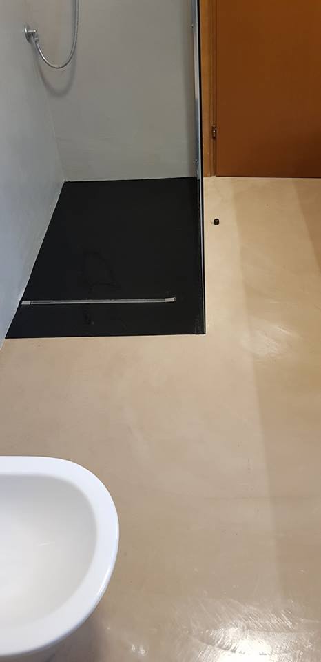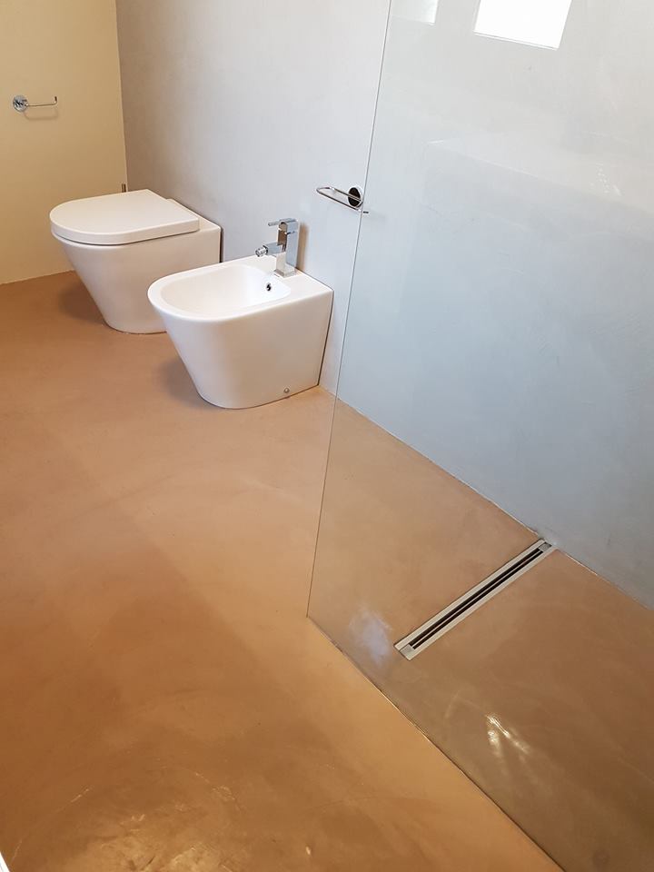 BAGNO CON PARETI IN SPATOLATO DI RESINA PAVIMENTO IN RESINA AUTOLIVELLANTE