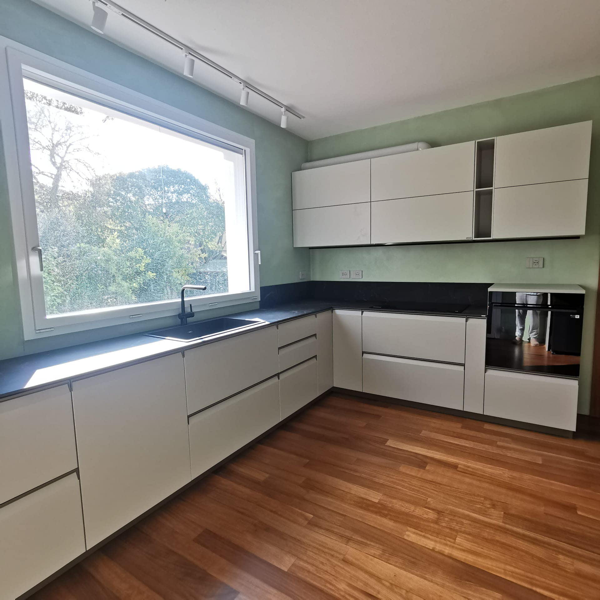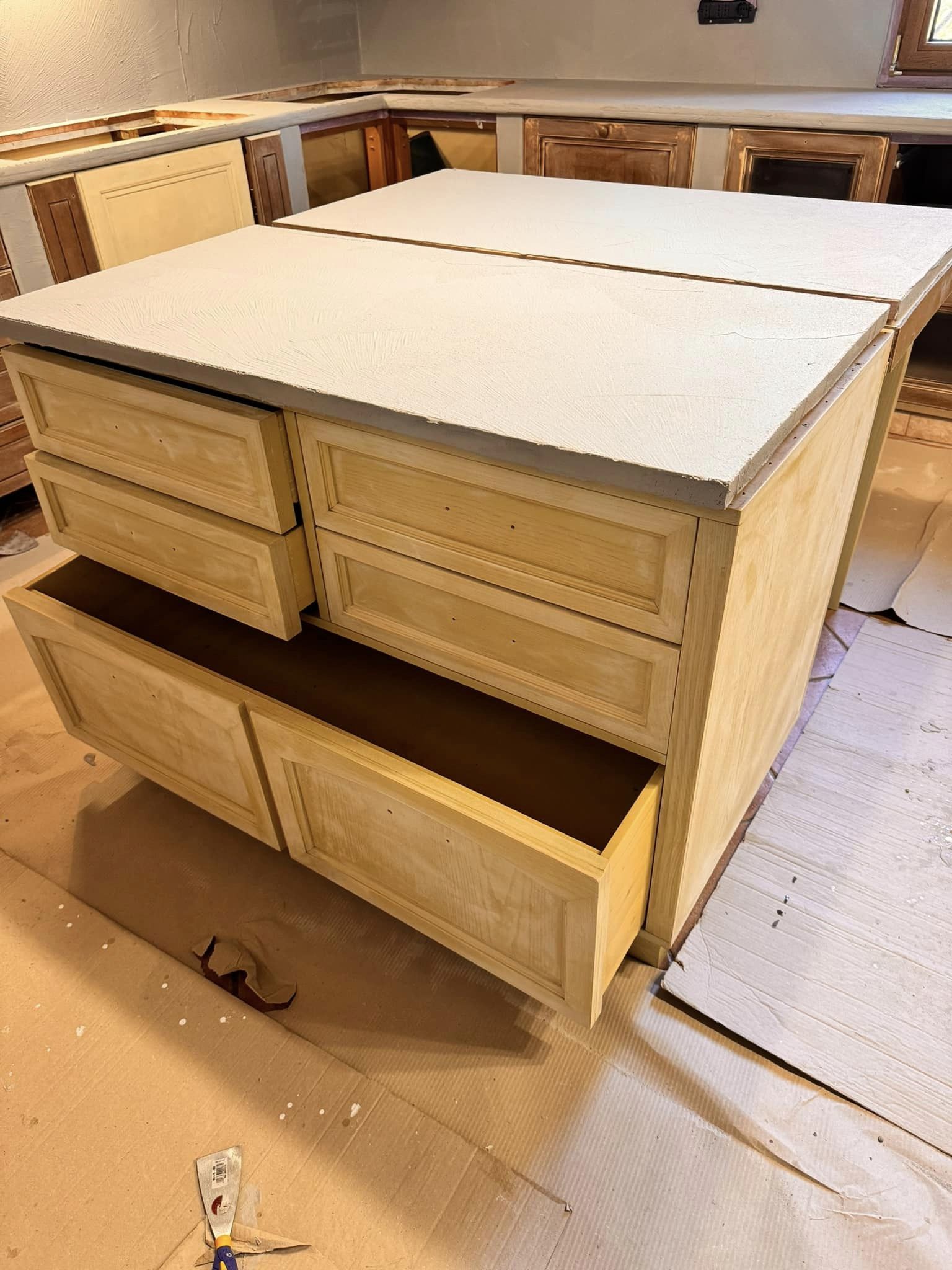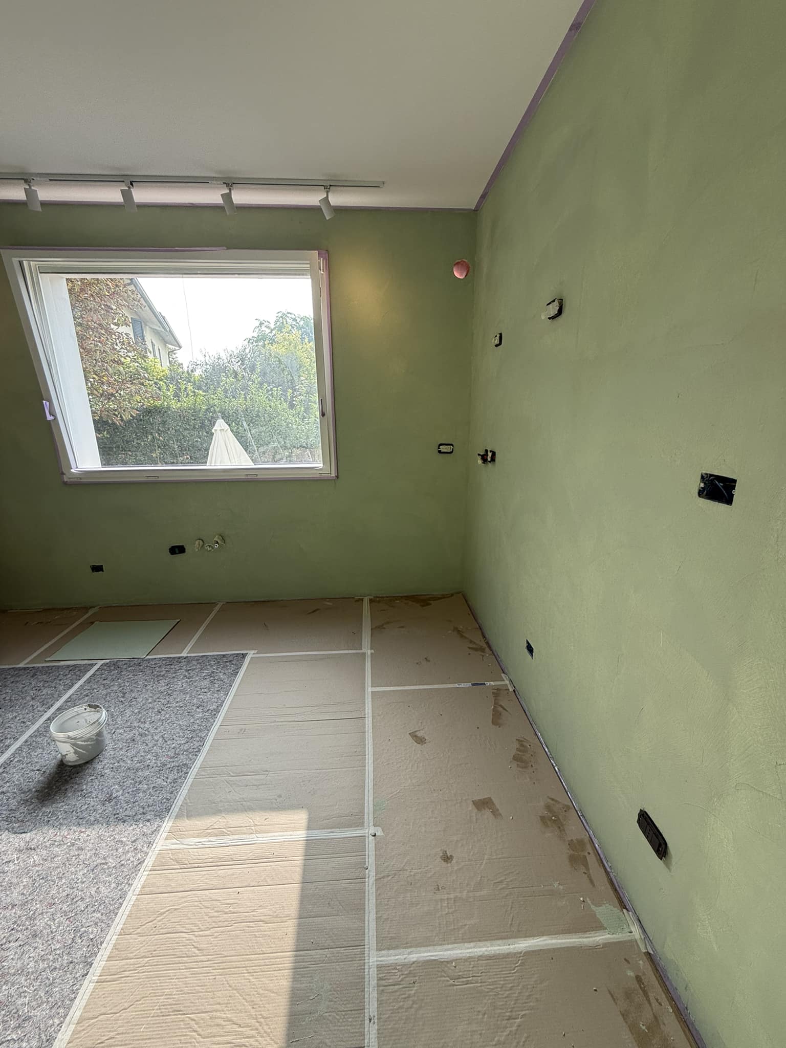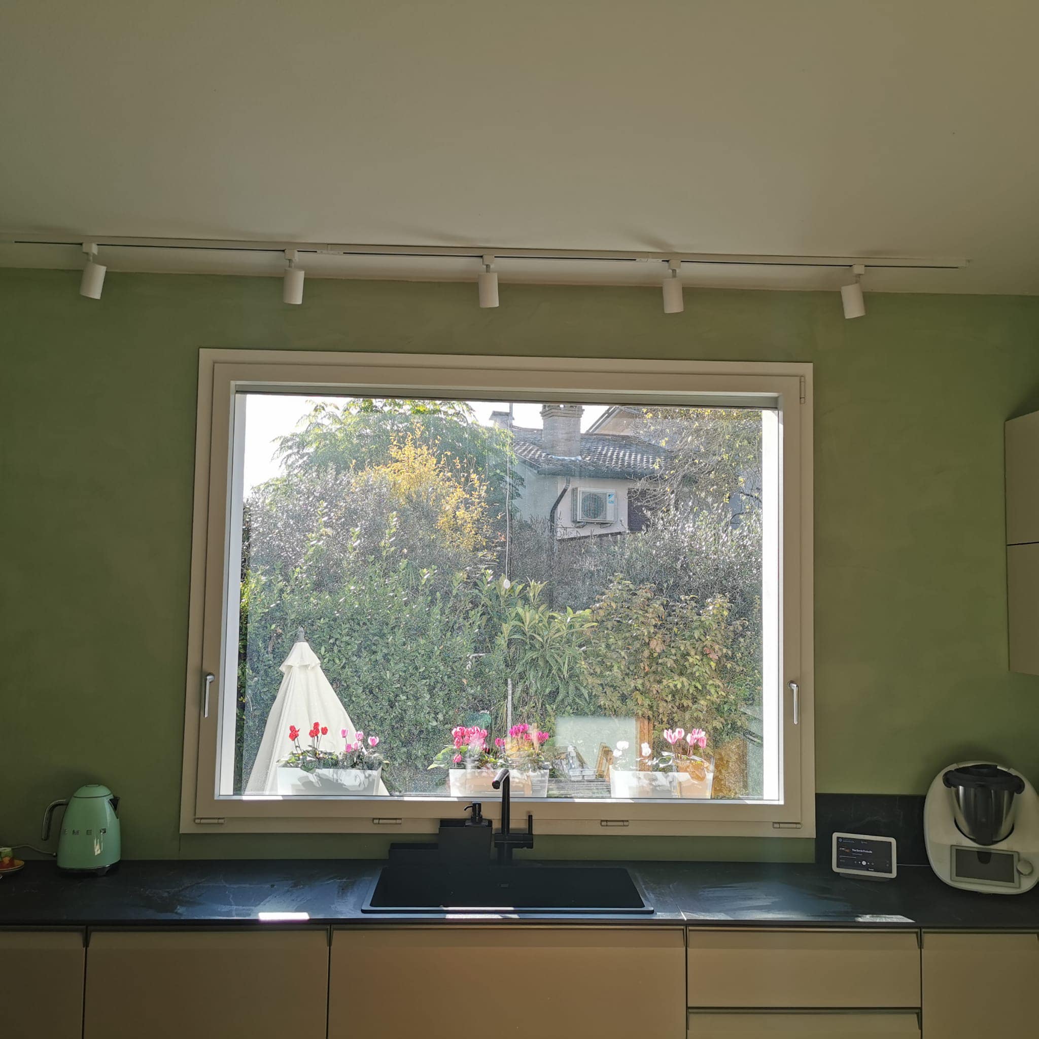 Restyling pareti cucina con resina effetto spatolato, spessore 3 millimetri, impermeabile ed ignifuga.