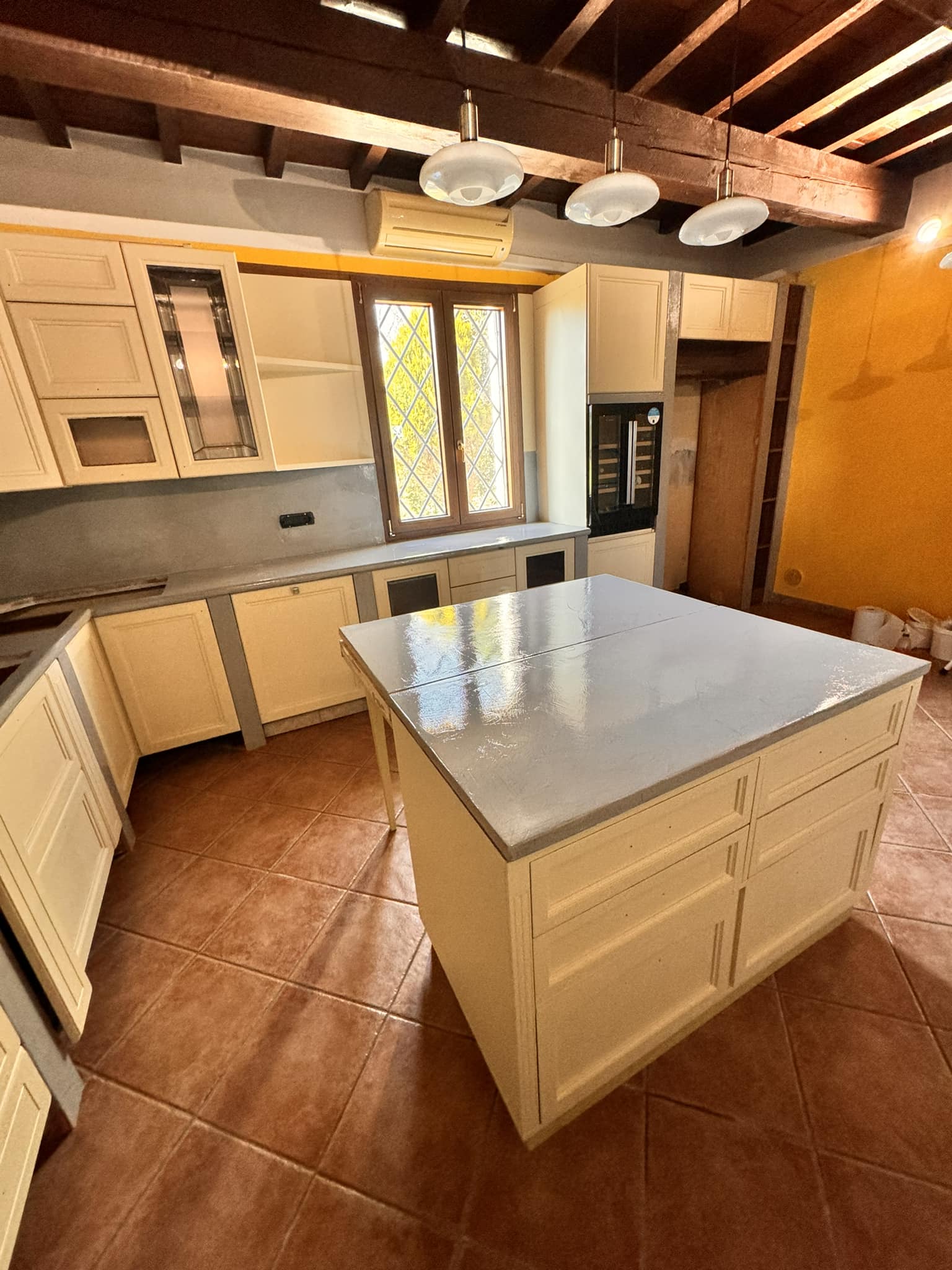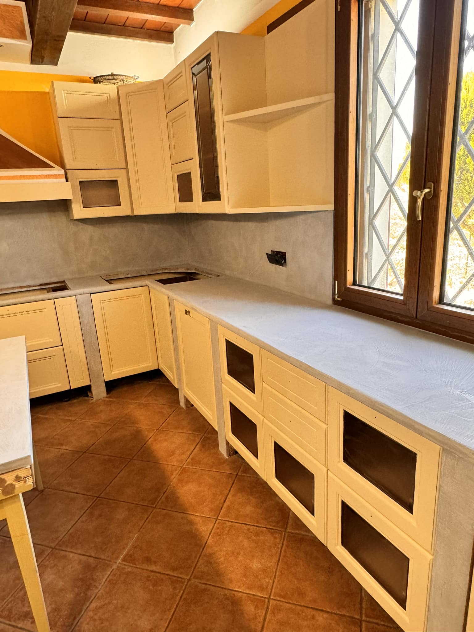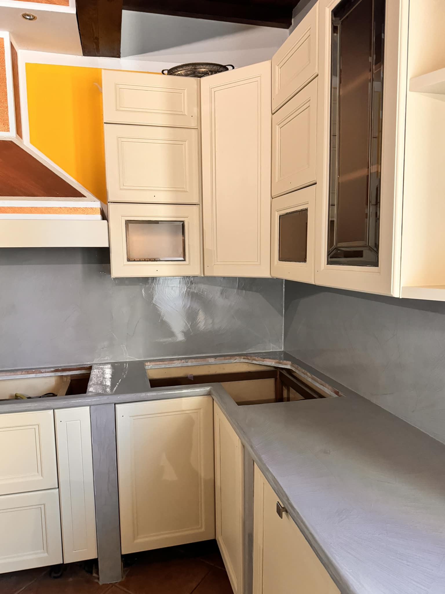 PARETI CUCINA CON RESINA EFFETTO SPATOLATO SU PIASTRELLE